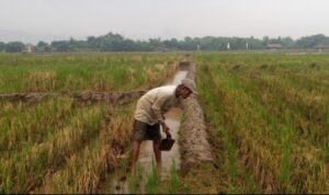Sodikin mencontohkan penyemprotan pupuk daun campuran yang dapat meningkatkan kualitas hasil panen.