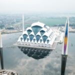 Salah satu keunikannya, masjid ini dibangun diketiga sisinya dikelilingi air. Belum lagi desain arsitektur bangunan utama yang sungguh memukau, mirip setengah bola raksasa.